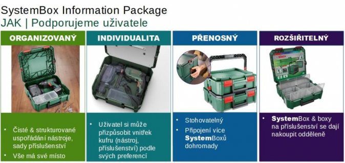 - Možnost rozšíření o boxy na příslušenství a krycí boxTechnické údaje