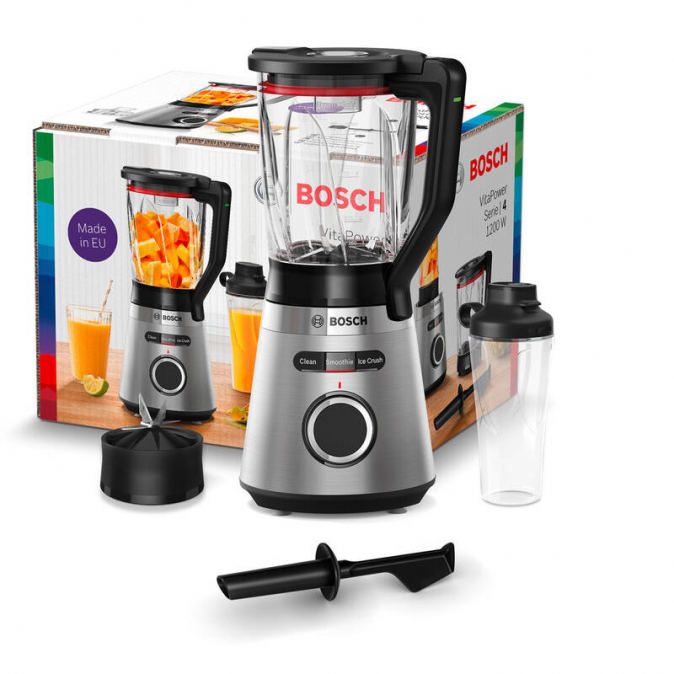 - Kvalita vyrobená v evropské továrně Bosch: dlouhá životnost, spolehlivý design a vysoce kvalitní materiály. Tento mixér vám bude dělat dlouho radost. Vysokou odolnost zaručuje 100hodinový test, ve kterém se připravilo více než 10 000 nádob smoothie. Špičkový výkon je dán vysoce kvalitními materiály, evropskou výrobou a mnohaletými zkušenostmi v oboru.