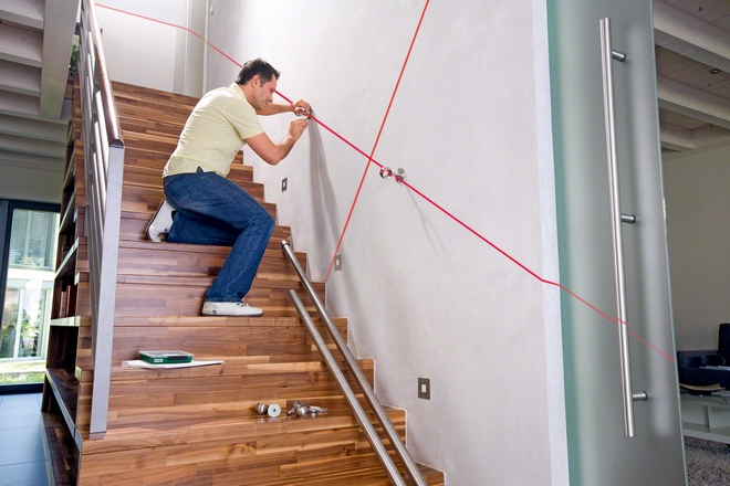 - Zobrazuje současně horizontální a vertikální čáru laseru