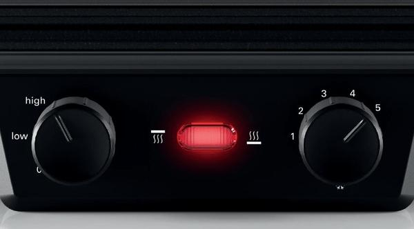- Plynule nastavitelný termostat usnadňuje zvolení ideální teploty pro každý pokrm. Chutné grilování - s plynulou regulací teploty lze bez problémů vybrat pro každý pokrm tu správnou teplotu. Příprava pokrmu z obou stran a ideálně zvolená teplota je zárukou prvotřídního výsledku. Například steaky ugrilujete do dokonalosti - zvenčí budou opečené, ale uvnitř růžové. Rychle, napřímo, jednoduše a bez prskající mastnoty.
