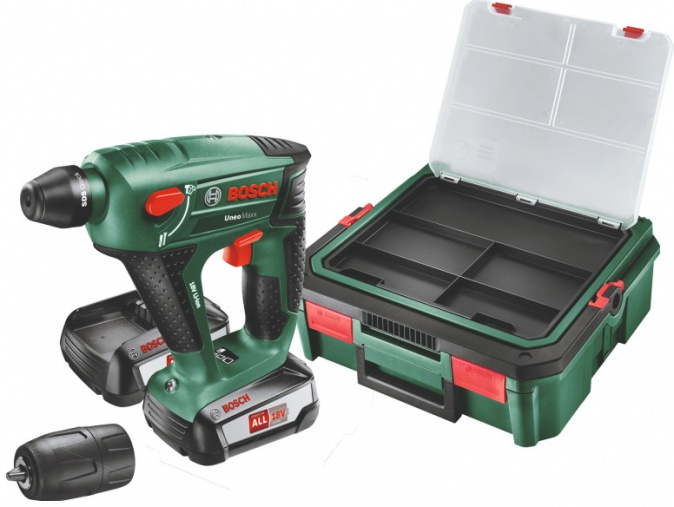 Bosch UNEO MAXX 18 Li SystemBox AKU VRTACÍ KLADIVO SE SKLÍČIDLEM SDS-Quick (2 x PBA18V/2.5Ah, AL1830CV) 060395230K